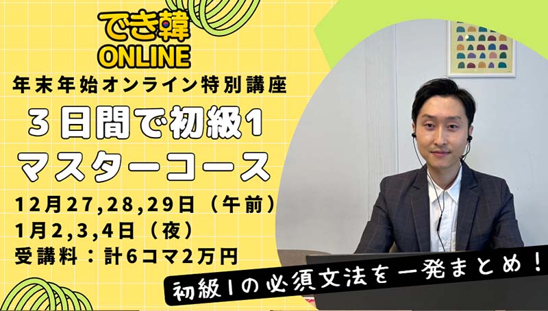 でき韓オンライン 年末年始特別講座「3日間で初級1マスターコース」